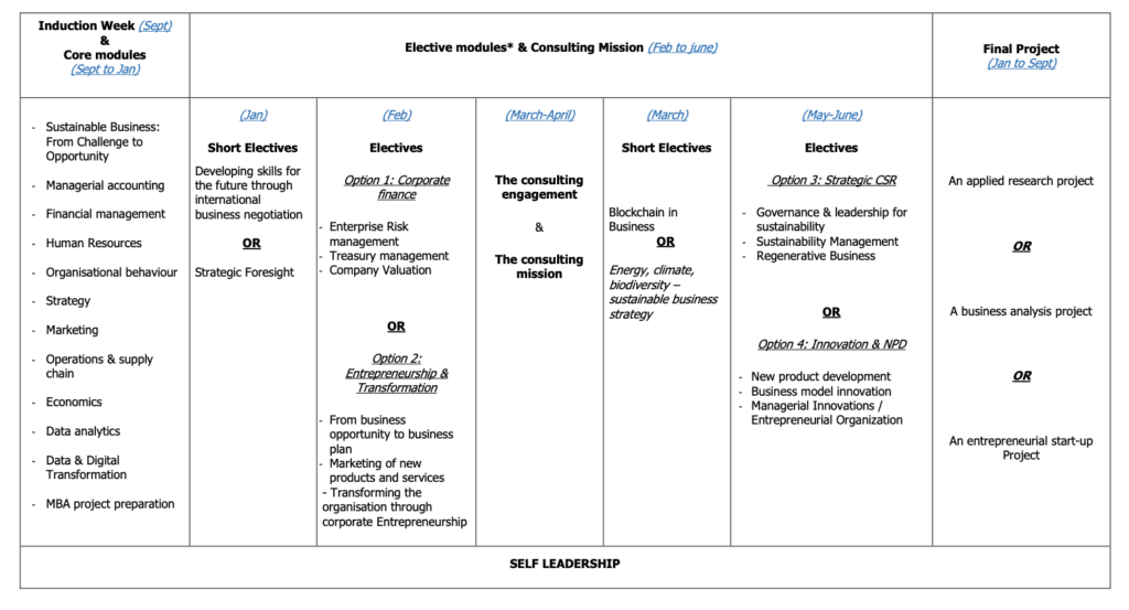 AudenciaのMBAプログラムの概要はこちらになります。(2024-2025 International MBAの場合)